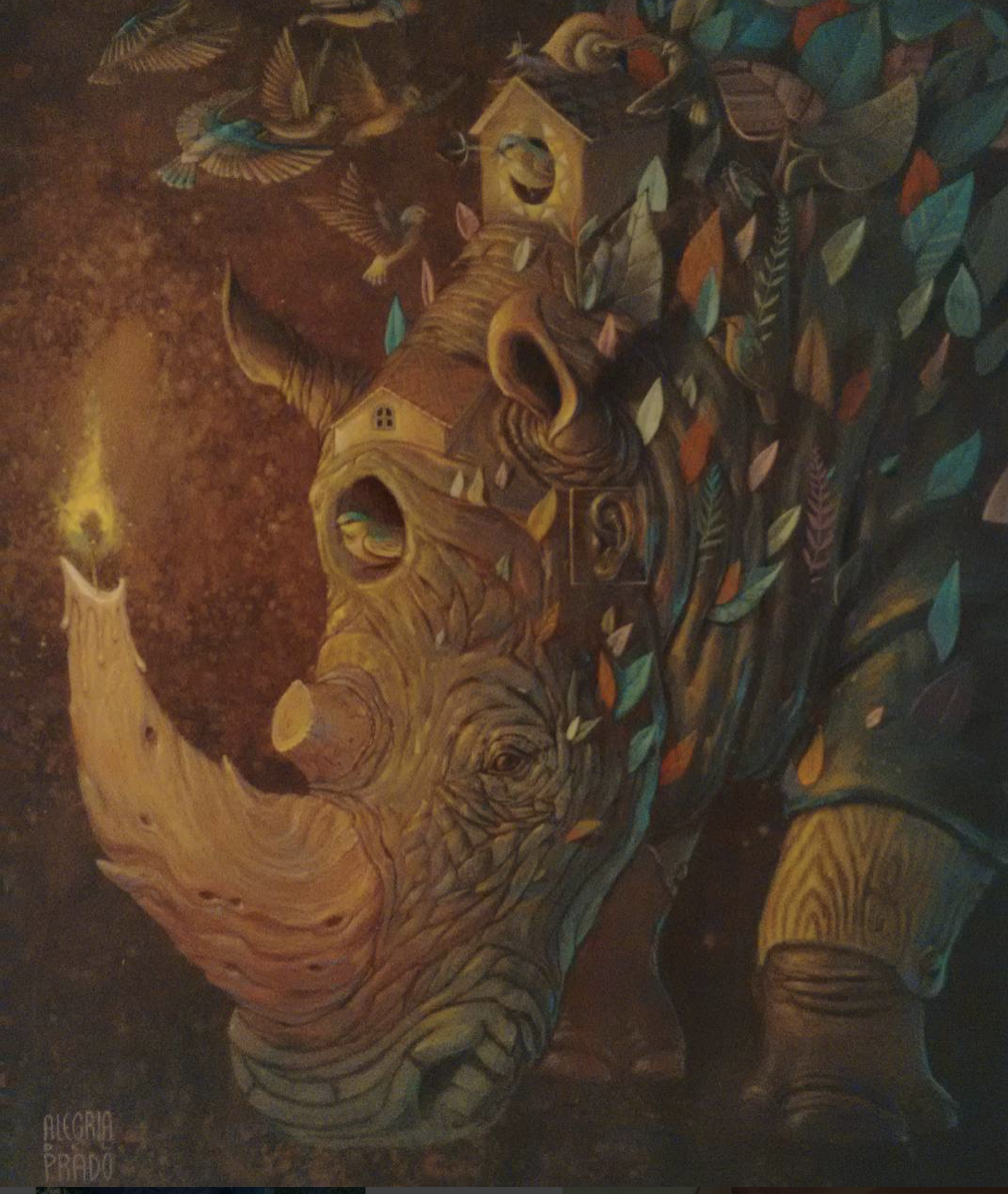 is a collaboration of two artists – Octavio Alegria from Mexico and Esther del Prado from Spain. They’ve been working together since 2010. In their work they mostly create dream worlds, calling for harmony between nature and modern world. They also paint murals, so that the art can be more directly integrated into everyday life.