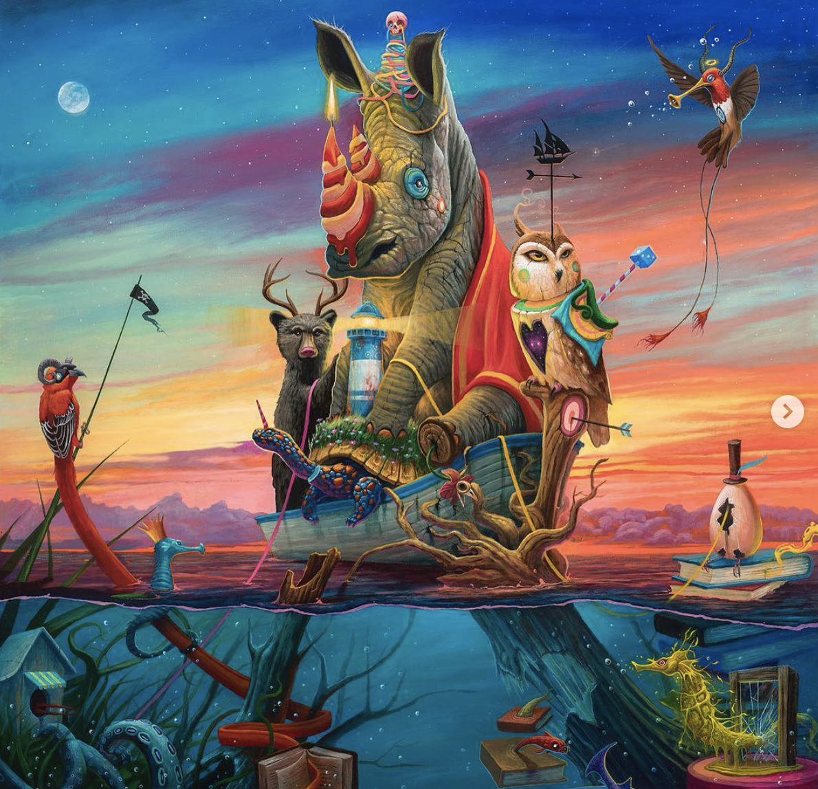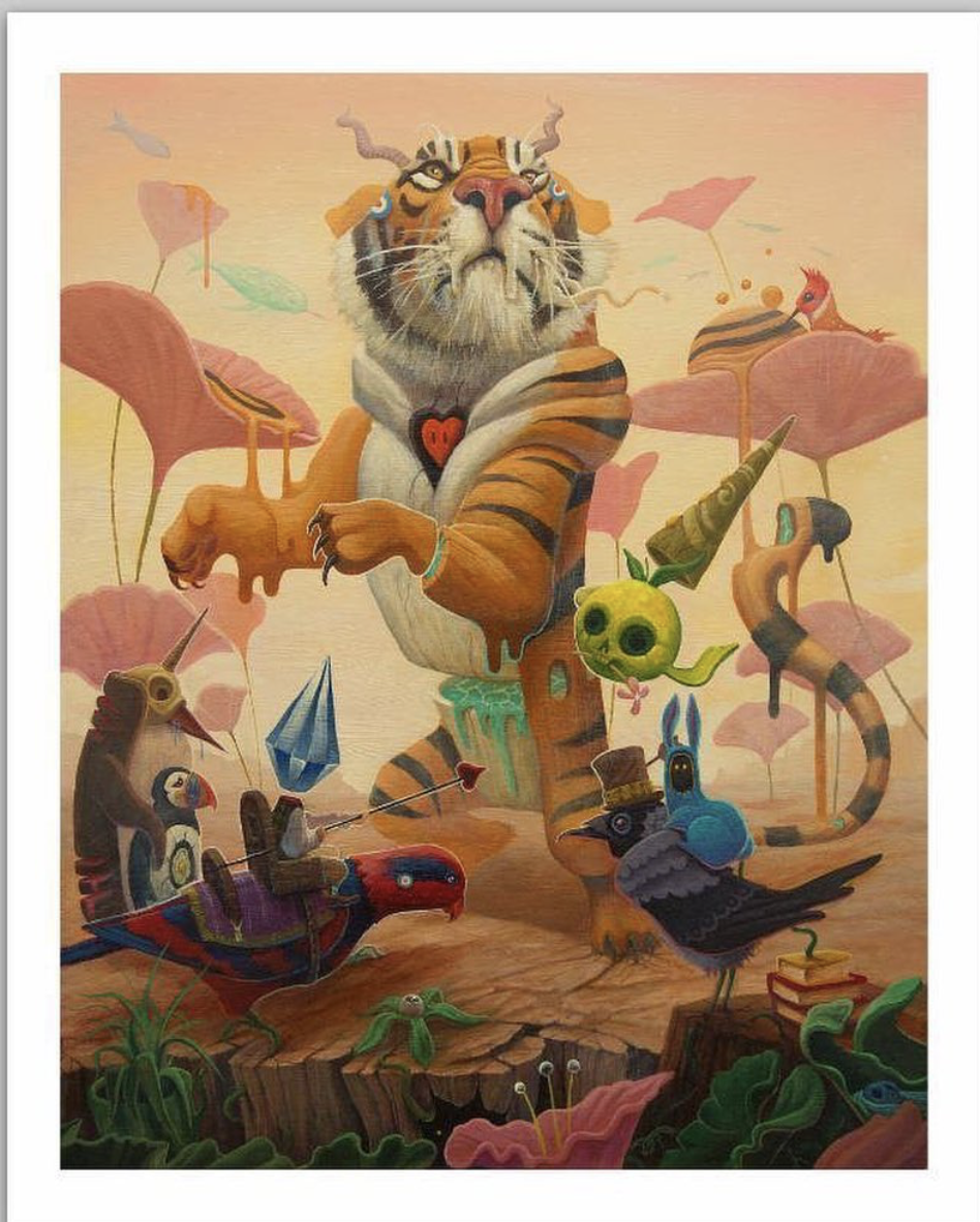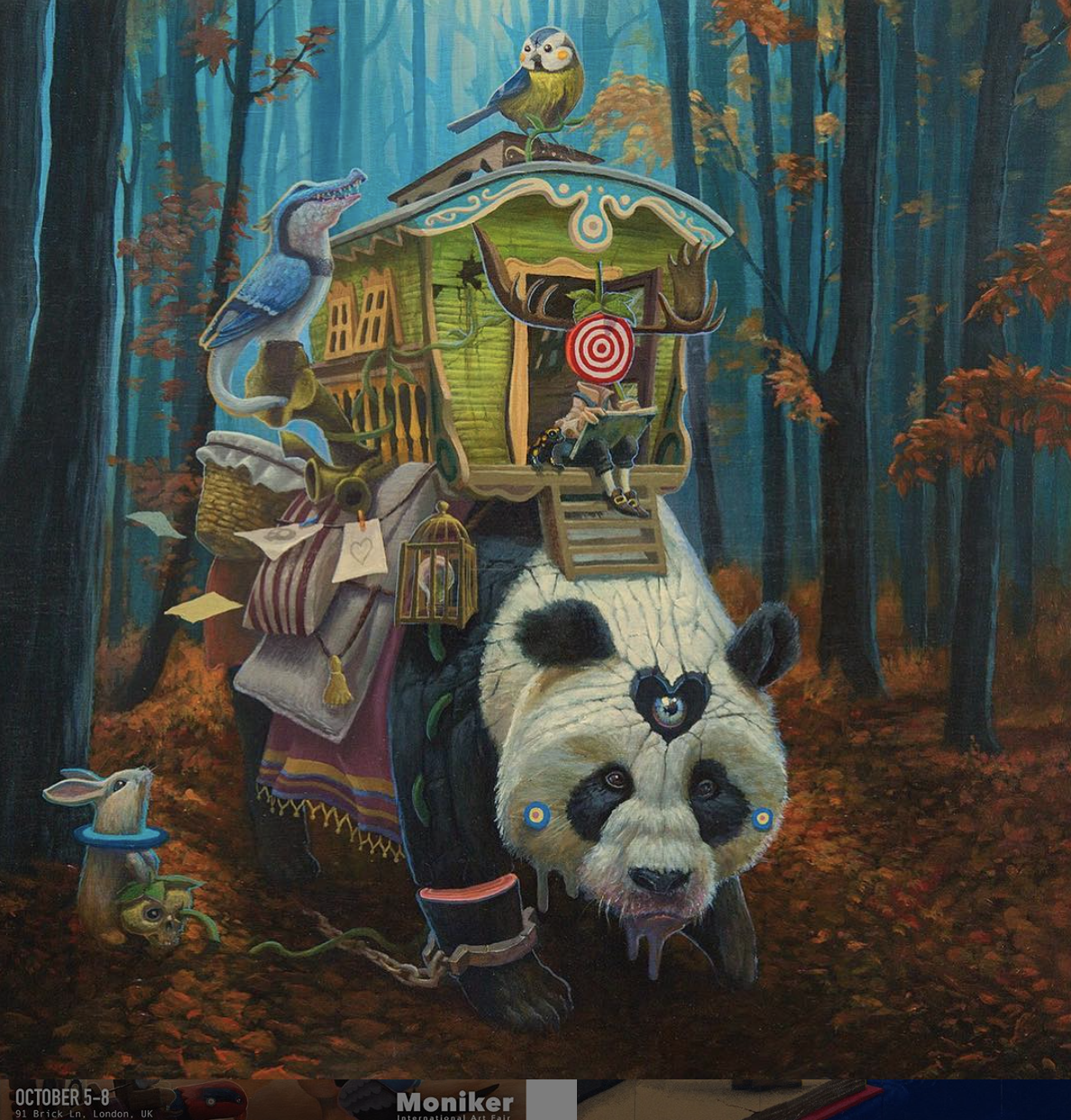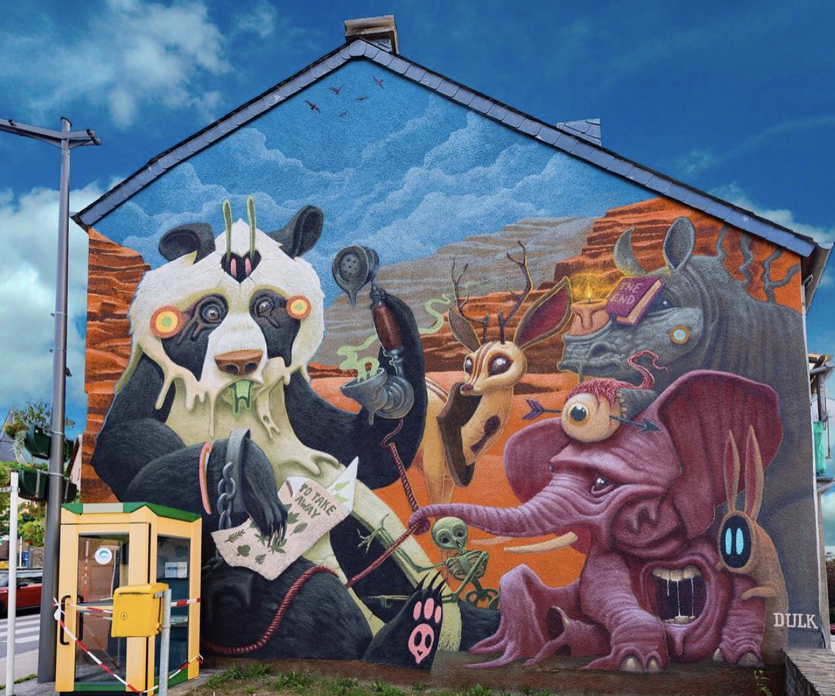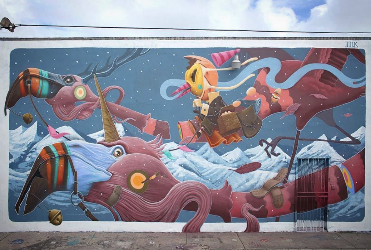 Dulk was born in Valencia where still living nowadays. Dulk is an all-purpose artist. Between urban art, drawing, painting, sculpture, each medium is a challenge that he takes up with pleasure and determination. His art has evolved in a remarkable way in recent years but its essence has always been the same. His naturalistic worlds show us a tragi-comic and surrealistic themed landscape full of details, sometimes real sometimes fiction but always inviting us to dive on them. His compositions recreate biological environments involved in antagonistic concepts. With a soft chromatic palette, Dulk creates a oneiric narrative scenario full of characters, which is the first visualization transmits beauty and calm but that will lead us to a deeper meaning in the following observations. The artistic evolution of the work is projected beyond the perfection of the technique and the detail that invite you to get lost or the spaces where you can get carried away. The study has led to subsequent incorporation into a plastic language, endowing creations with the autonomy that allows the viewer to be free in the dialogue with the work and share with it an open story.